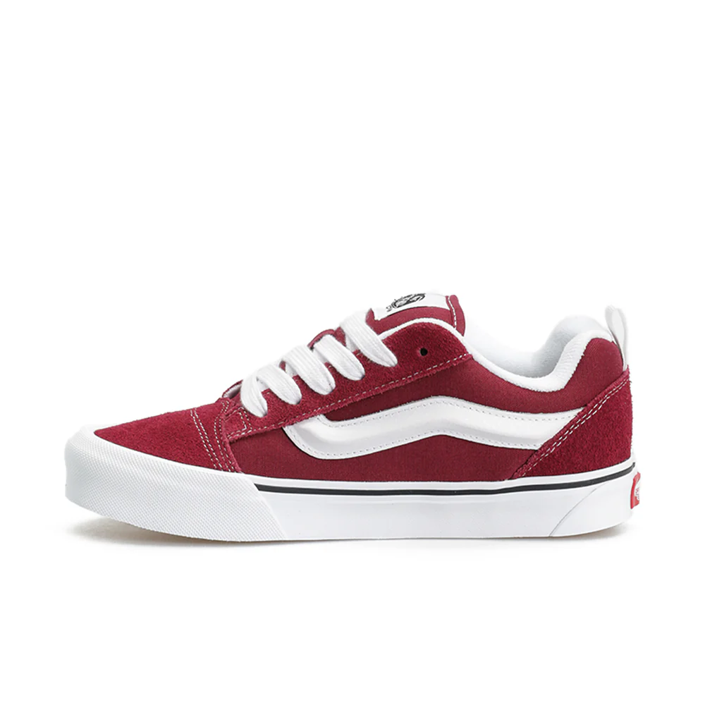 The Knu Skool is a modern interpretation of a classic 90s style, defined by its puffed up tongue and 3D-molded Sidestripe, and tied off with oversized, chunky laces. With its in-your-face profile and dramatic two-toned style details, the Knu Skool plays off of the original Old Skool while blending an icon of the past with todays trends.